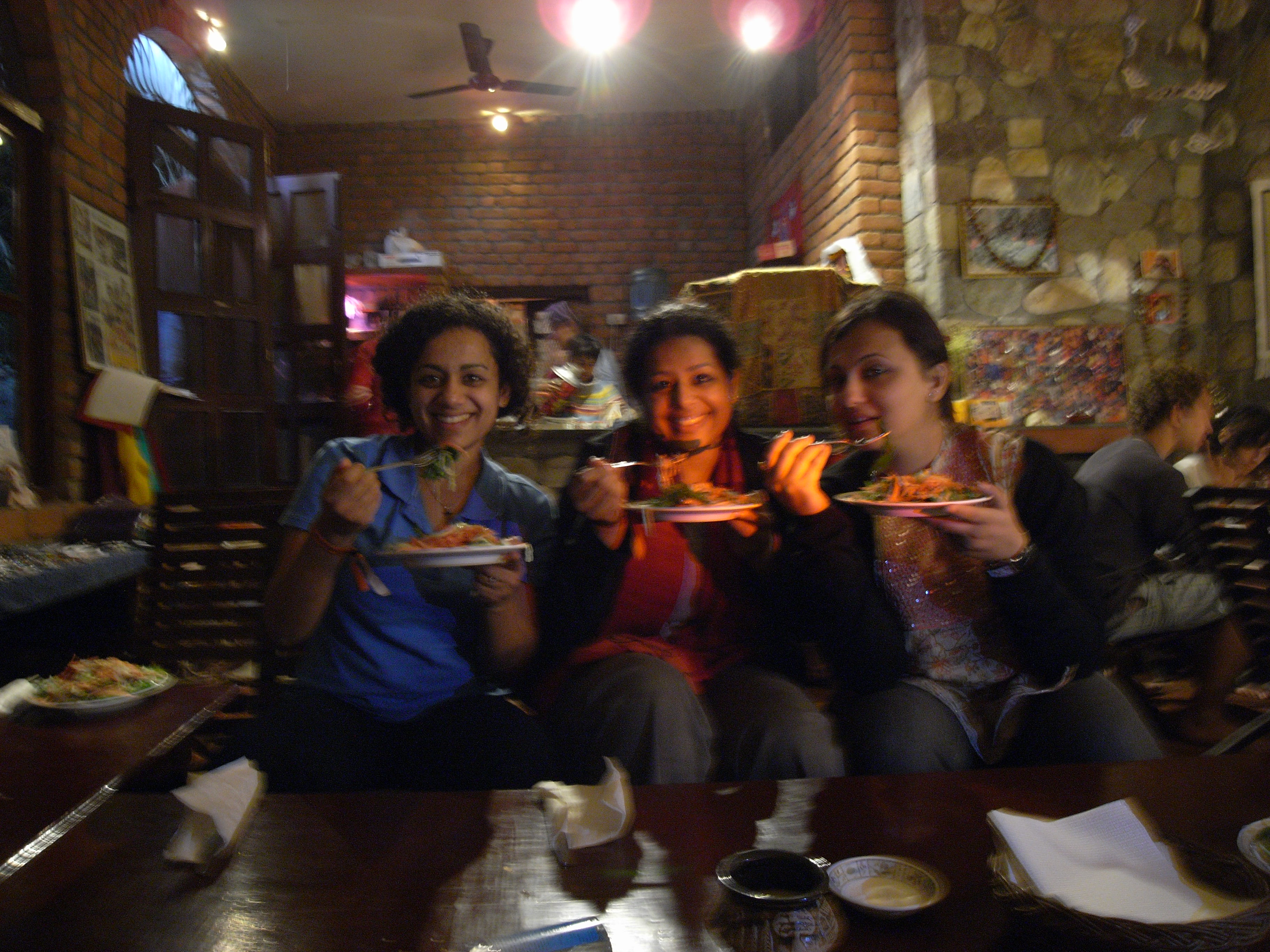 Past wobbly wooden fences enclosing whispering gardens bright with lettuce, lemons and pumpkins. It’s windy at night by the glacial Ganga. So finally inside the cosy thatched ‘ theatre,’ featuring a stage strung with fading bed sheets, we’re intensely grateful for the offer of steaming honey-lemon-ginger tea.